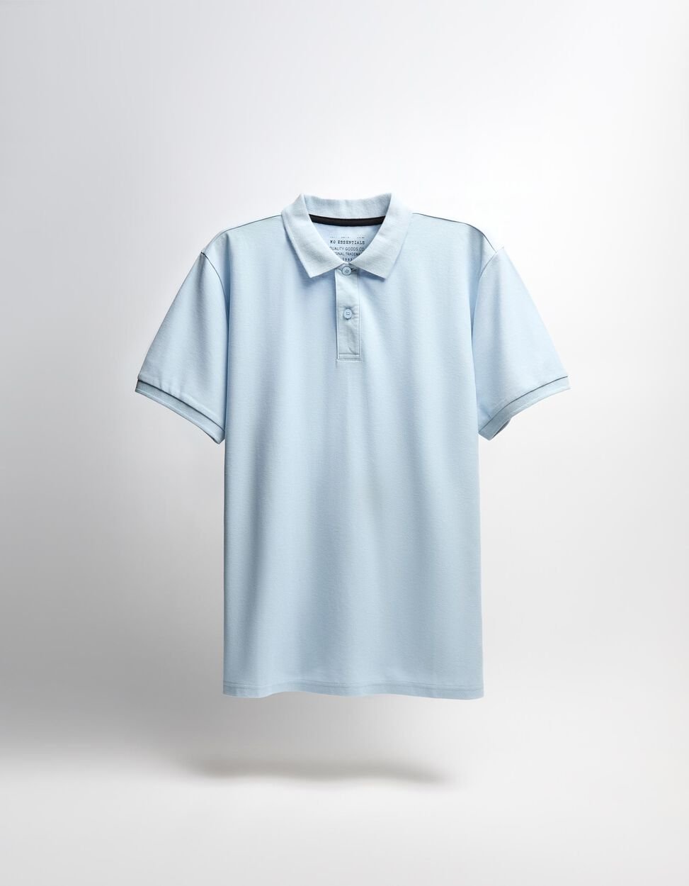 Polo de manga curta da linha ‘MO Essentials’, para homem, em 100% algodão piquet. Gola simples e botões no decote. Base mais comprida atrás do que à frente, com pequenas aberturas laterais.
